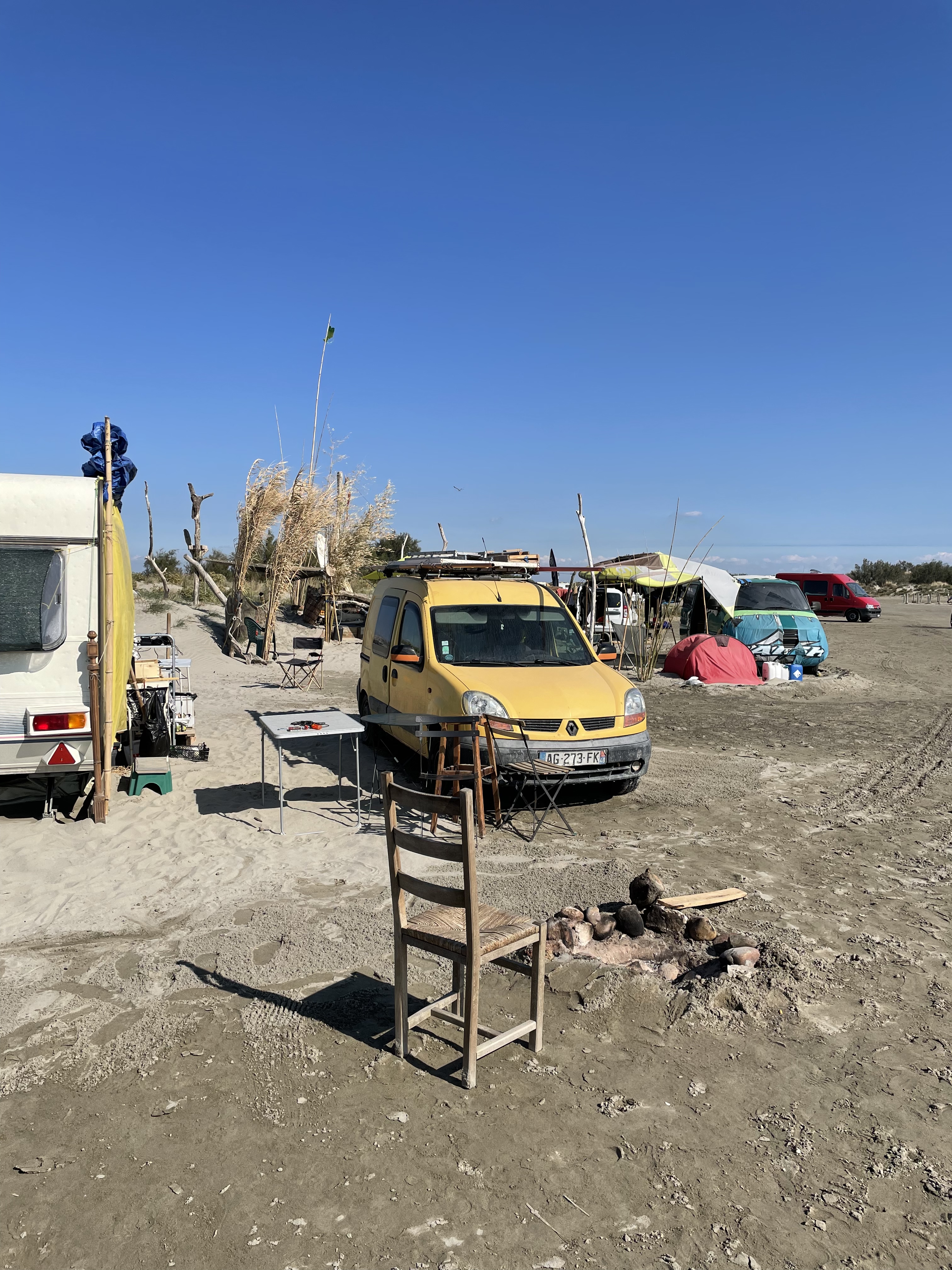 What we didn’t expect was the surfer-hippie vibe that greeted us once we arrived at the parking area of the beach. Some of the groups of vans had even set up what looked like little camps with hammocks and cooking areas. People hanging out in front of their tents or rolling back their surfing gear from the beach. For those surfers among you, this must be the place to be! But even without a surfboard it’s nice to find a quiet spot in the dunes, have a little picnic and just watch the waves come and go. Forgetting all about time is the easiest thing to do at Plage de Beauduc.