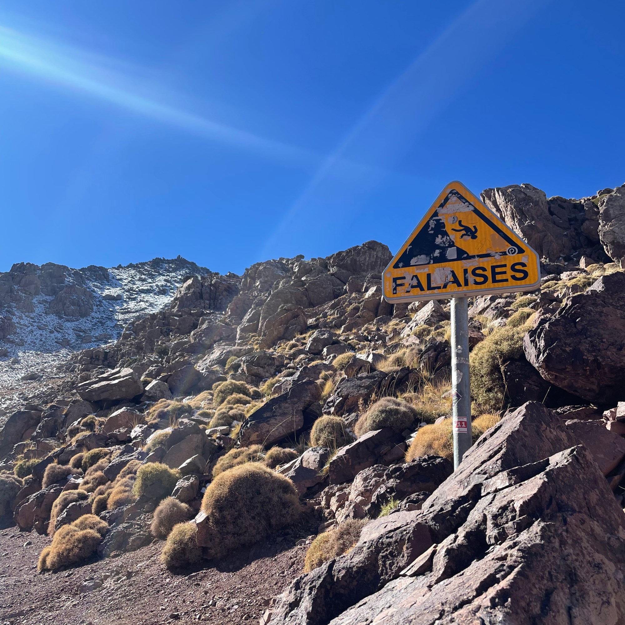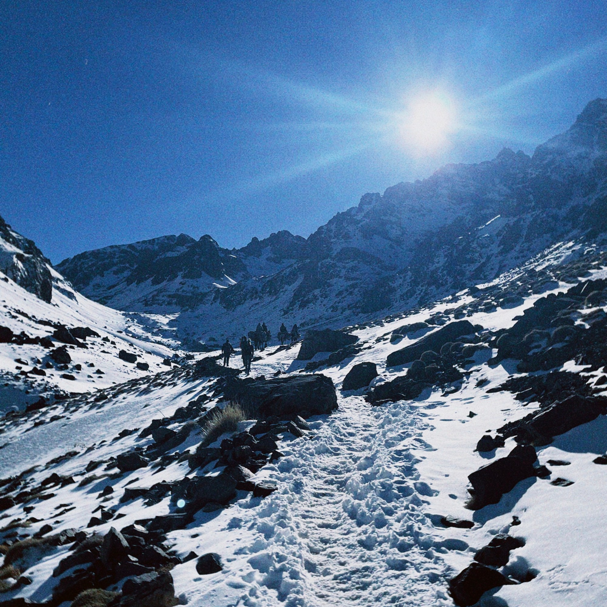 After more rest than anticipated, the alarm went off at 4:30am and an unexpectedly lavish breakfast was waiting for us in the common room. Nobody particularly feels like eating at this time of the day, but we knew we’d need the energy and 2 hours later, we were glad we had gotten down the fuel for our bodies. The climb began in pitch darkness and was, without exaggeration, the hardest thing I’ve ever done. The mantra “Left, right. Left, right.” on repeat in my head. It’s safe to say that what got us to the top was the fact that our guide at some point started lying to us that it would only be “another 22 minutes from here”. After 3 hours, we finally reached the summit. With shaky legs and a big smiles on our faces we took in the breathtaking view of overlooking the endless Atlas mountains. But the cold hit fast. Without movement and nothing to block the wind, the temperature soon became unbearable and we started making our way back down.
