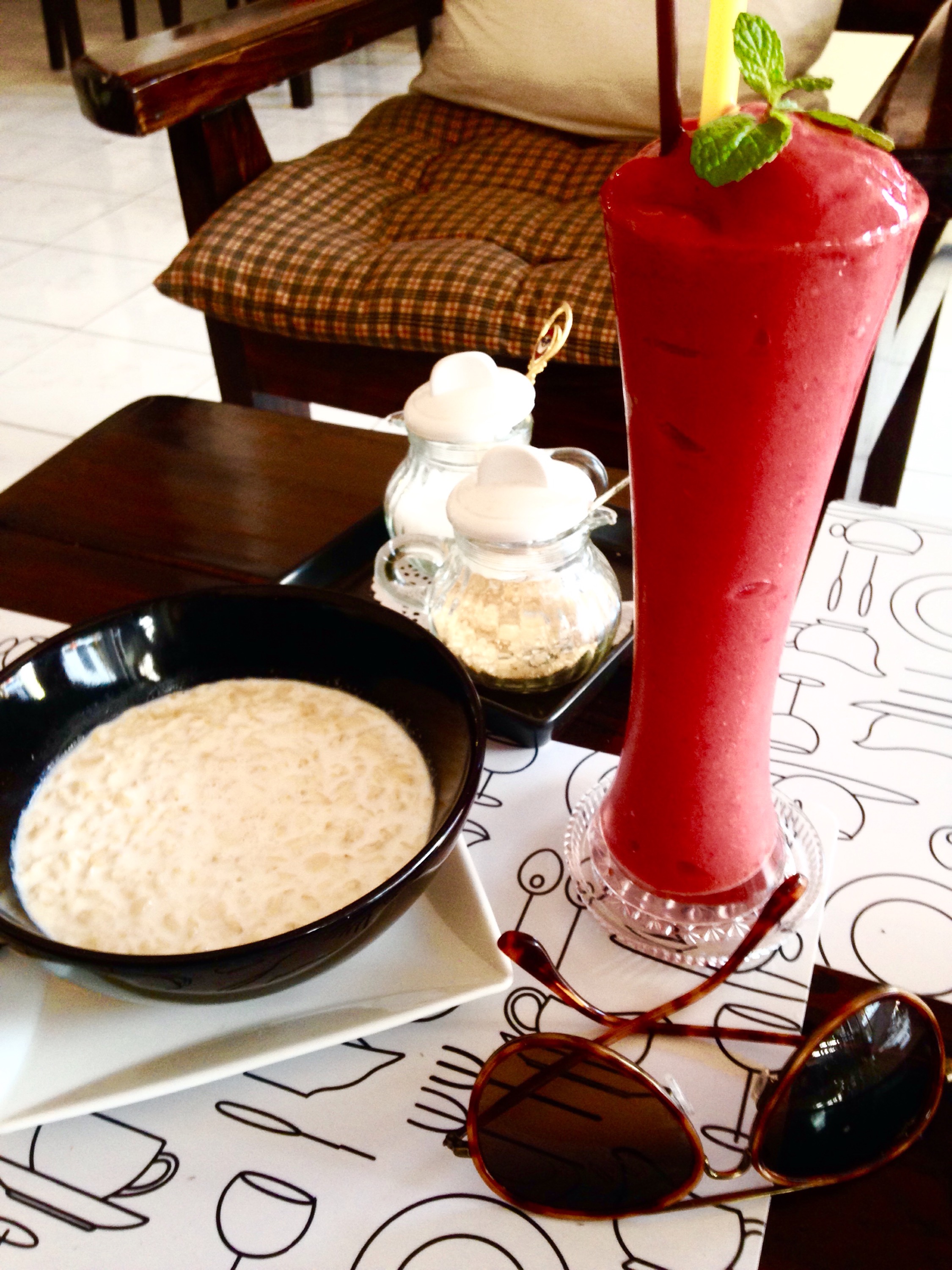 IMG_5463 Published March 3, 2015 at 2250 × 3000 in IMG_5463 If this is not perfection, I don’t know what would be: Oatmeal with honey and a mango-orange-raspberry smoothie as a welcome lunch in Chiang Rai
